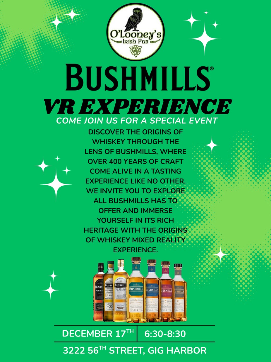 Come in For Open Mic and discover the origins of whiskey through the lens of Bushmills. Go on an immersive sampling journey which showcases Bushmills rich heritage, and maybe even get some swag.