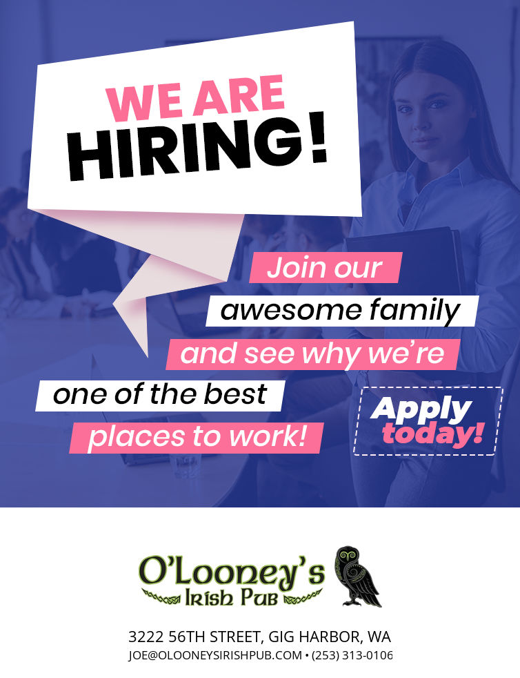 Welcome to O'Looney's Irish Pub, an authentic Irish themed pub located in Gig Harbor, Washington. Locally owned and operated by the Grandson of Sarah O'Looney.